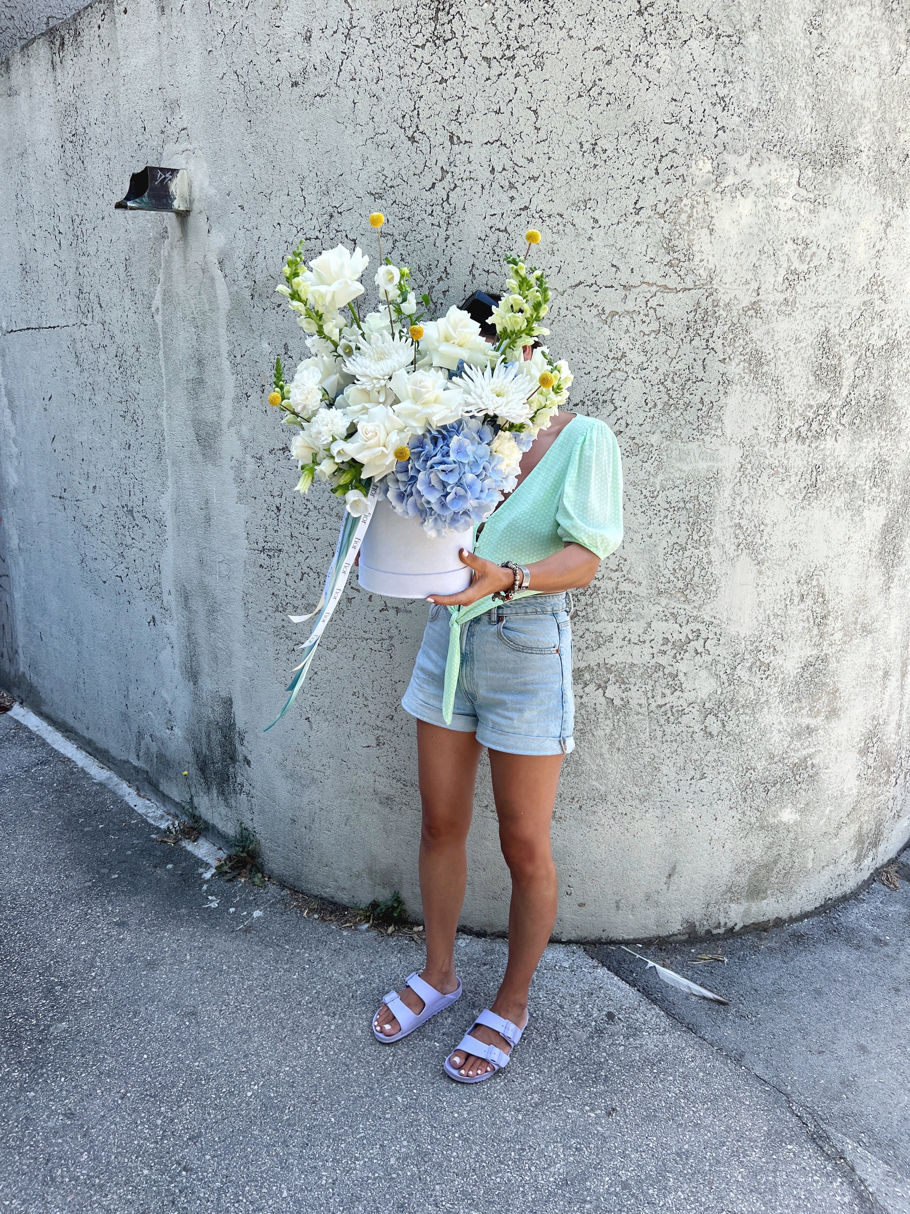 A flower box with a mix of fresh flowers in delicate shades is an ideal choice for greetings on the occasion of the new year, but also for all other beautiful moments in life.