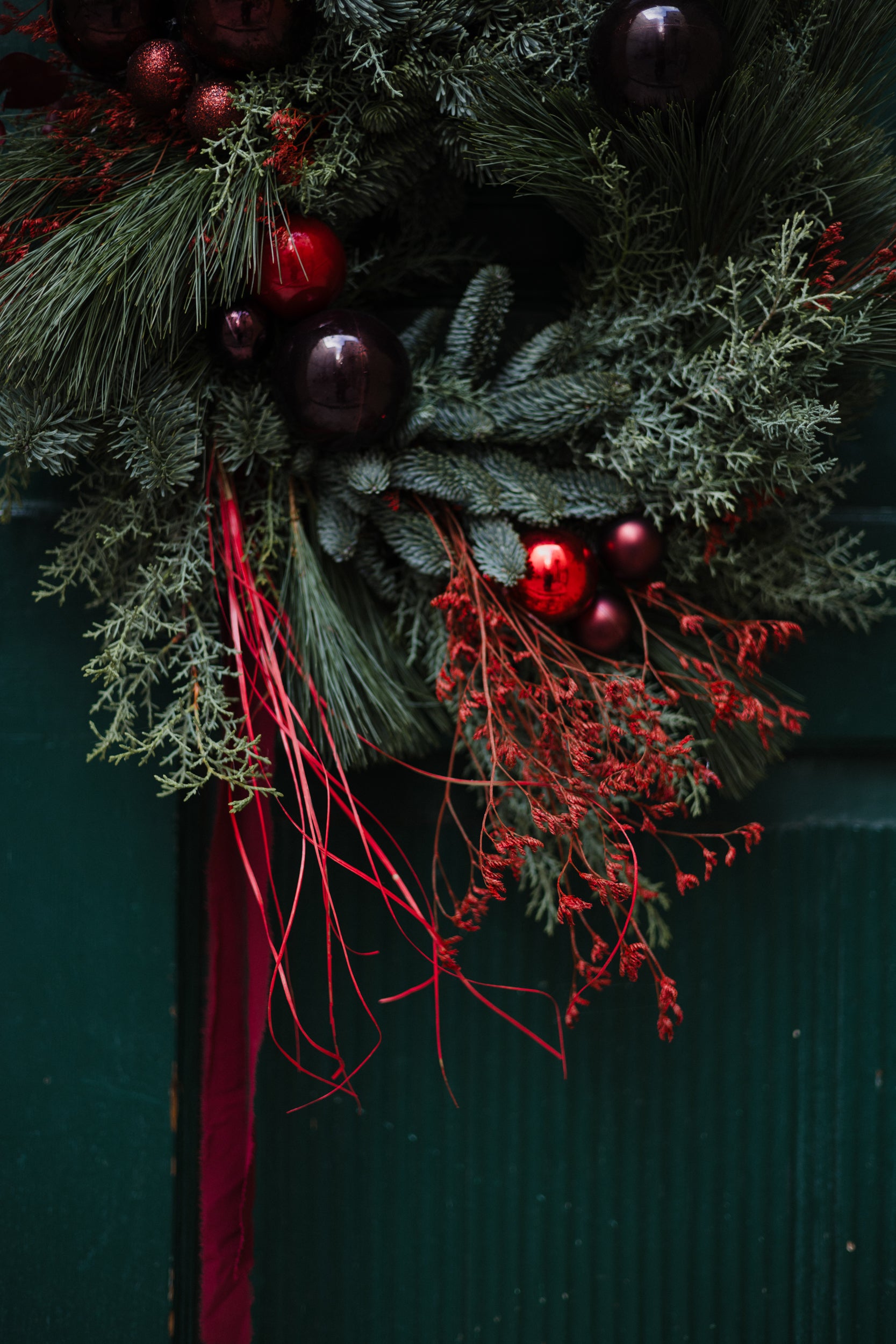 Nordijska jela, pinus, te ostalo zimzeleno bilje osim svoje izdržljivosti očarat će vas prekrasnim mirisom. Dodamo li prigodne, crvene detalje već ste stvorili malu blagdansku bajku. Ovi vijenci su idealni da za dekoraciju vrata i toplu dobrodošlicu pri samom dolasku gostiju u blagdanskom periodu. Osim na vrata možete ga smjestiti i na neko simpatično mjesto unutar doma. Vijencu pripada i skup tamo zelenih velvet traka.